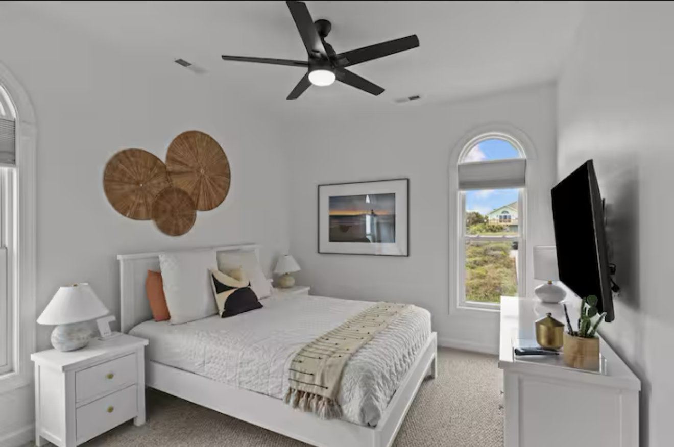 Soft and grounding, this cozy queen bedroom invites you to reconnect to your heart space. With its warm tones and gentle light, it’s the perfect space to unwind, journal, and restore your energy between gatherings.